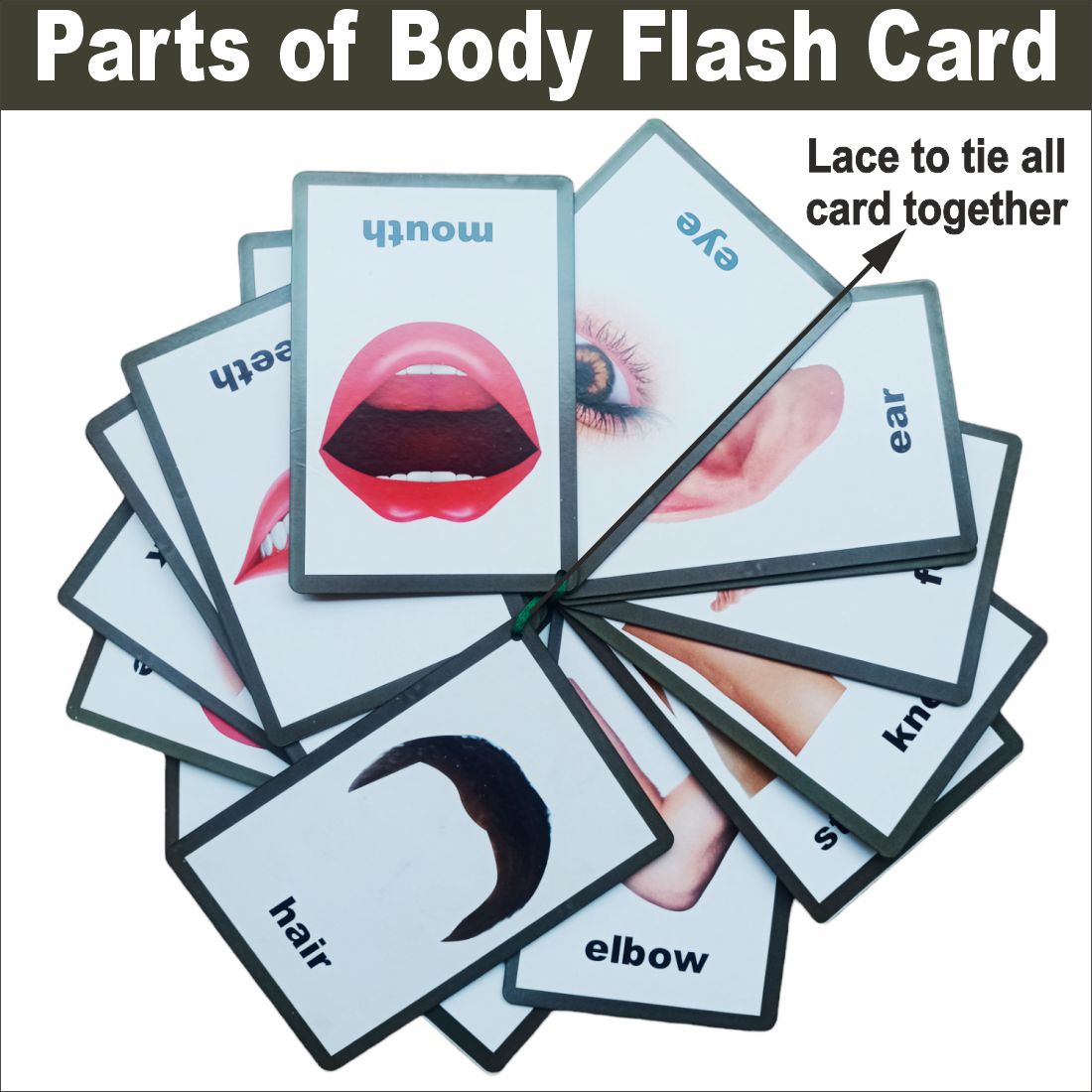 Wooden (MDF) Parts of Body Learning Flash card with lacing thread.